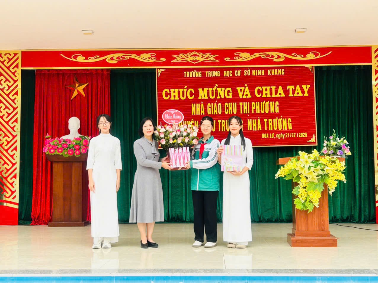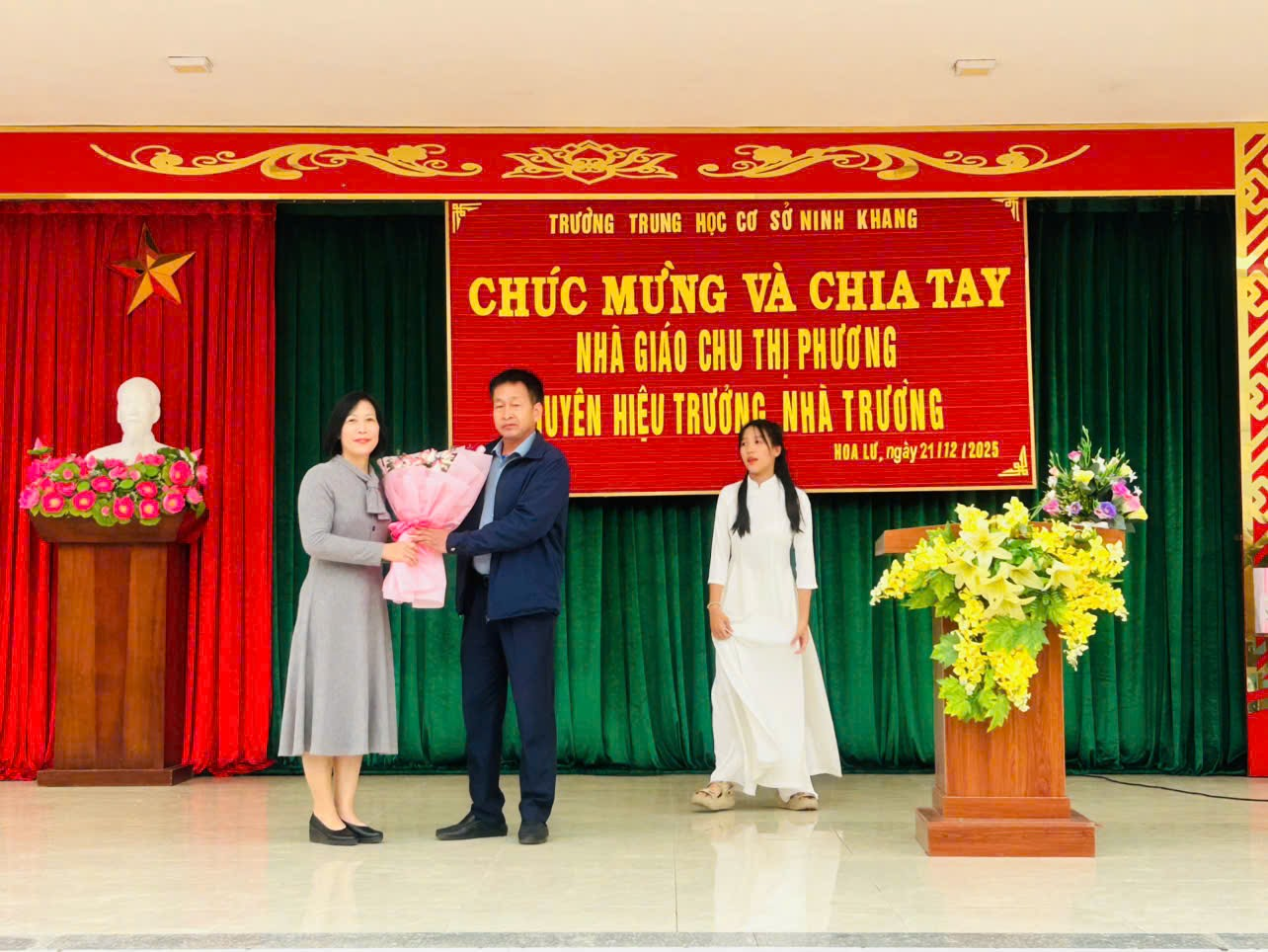 Buổi lễ khép lại, song tình cảm và những dấu ấn tốt đẹp mà cô Chu Thị Phương để lại sẽ luôn được thầy và trò Trường THCS Ninh Khang trân trọng và ghi nhớ.