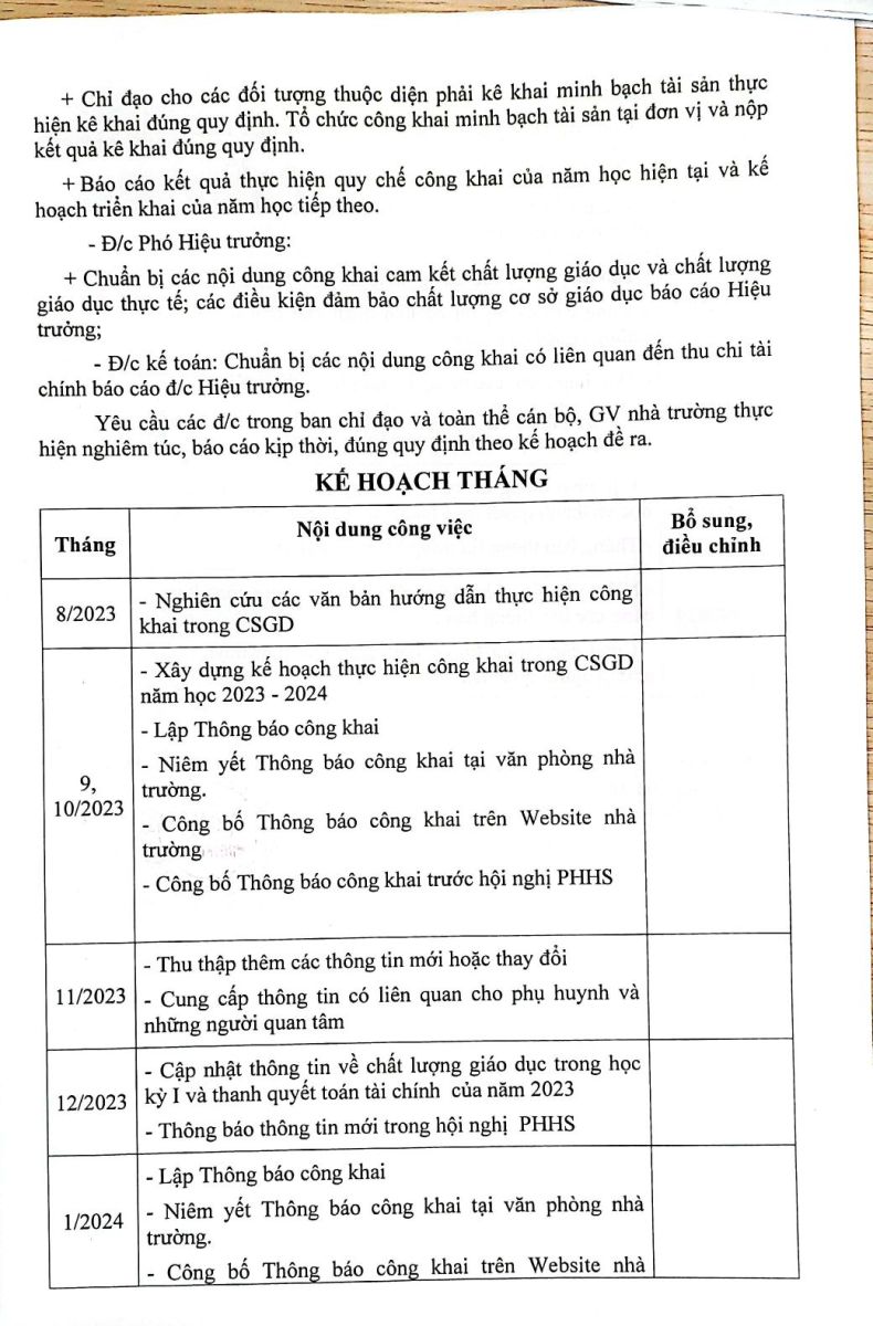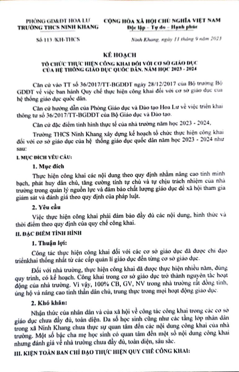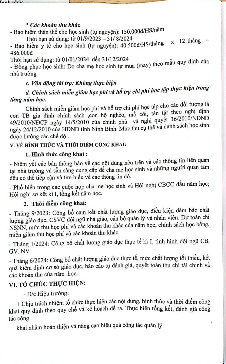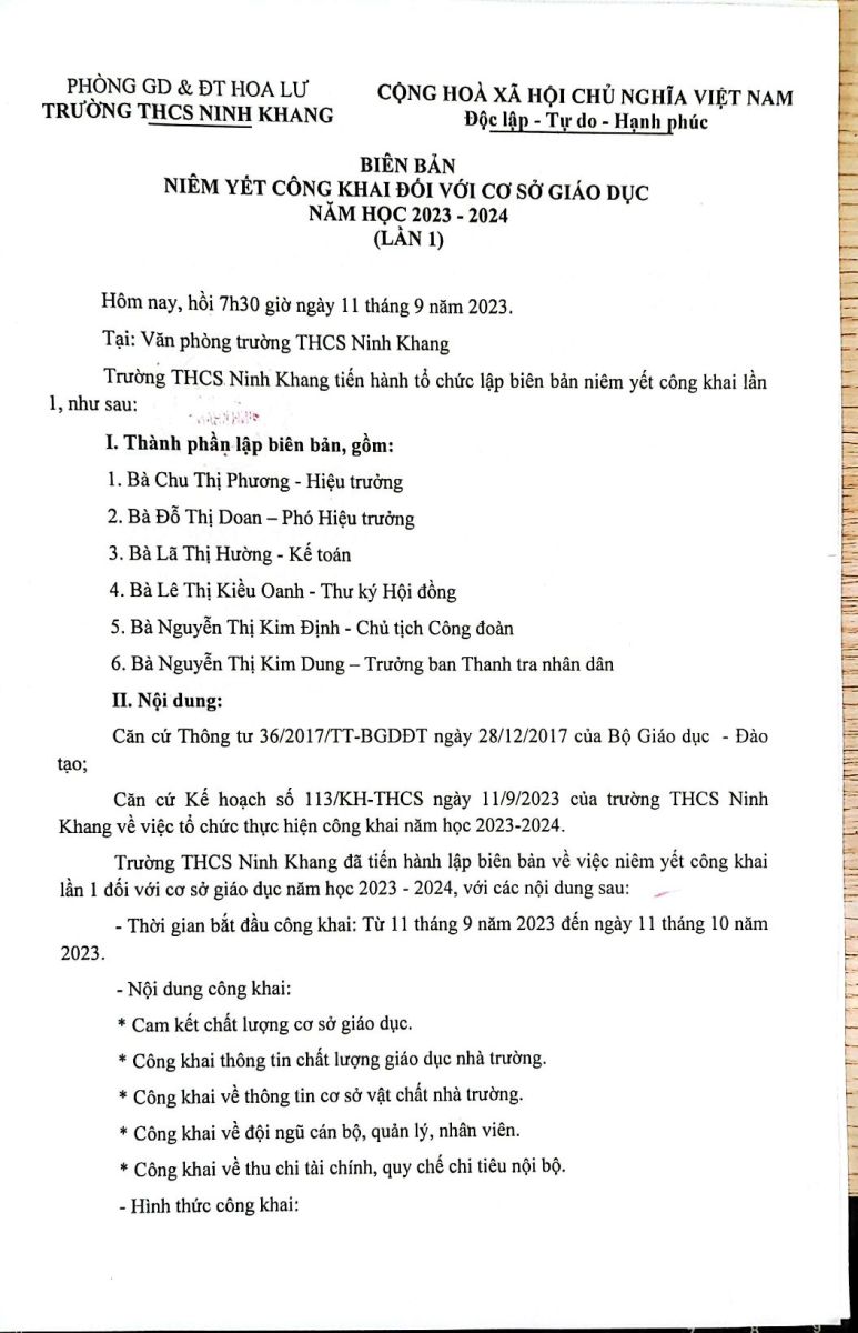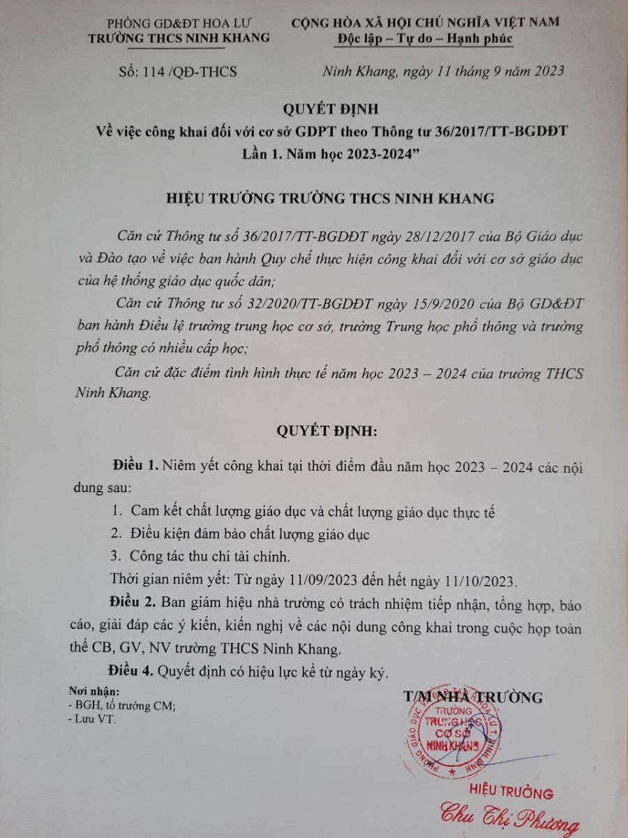 Quyết định Công khai và các biểu mẫu Công khai lần 1 năm học 2023-2024