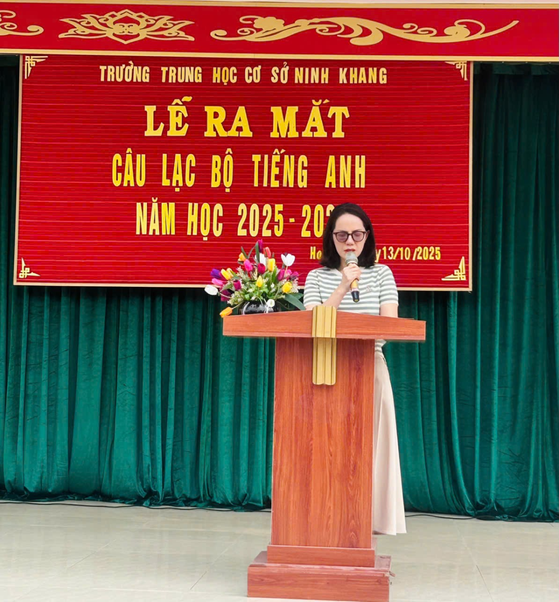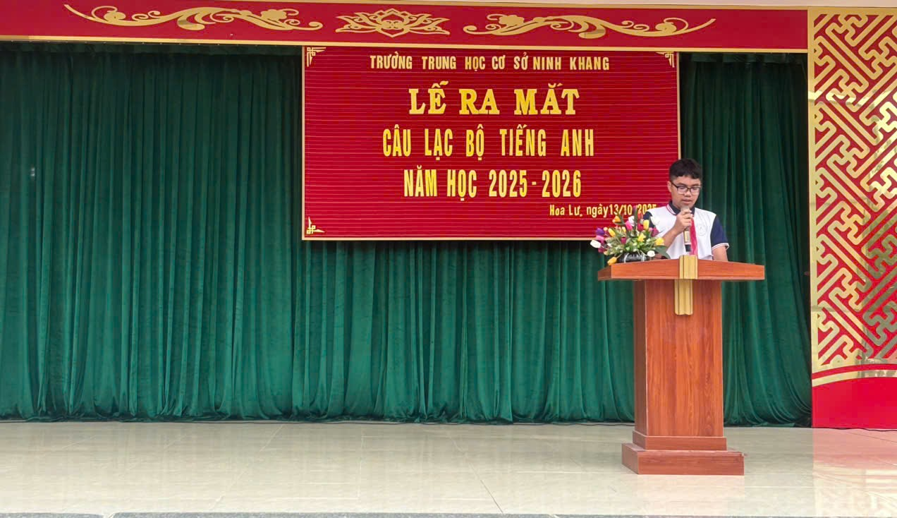 Sáng ngày 13 tháng 10 năm 2025, trường THCS Ninh Khang long trọng tổ chức Lễ ra mắt Câu lạc bộ Tiếng Anh với sự tham dự của Ban Giám hiệu, các thầy cô giáo, cùng đông đảo học sinh yêu thích môn Tiếng Anh trong toàn trường.